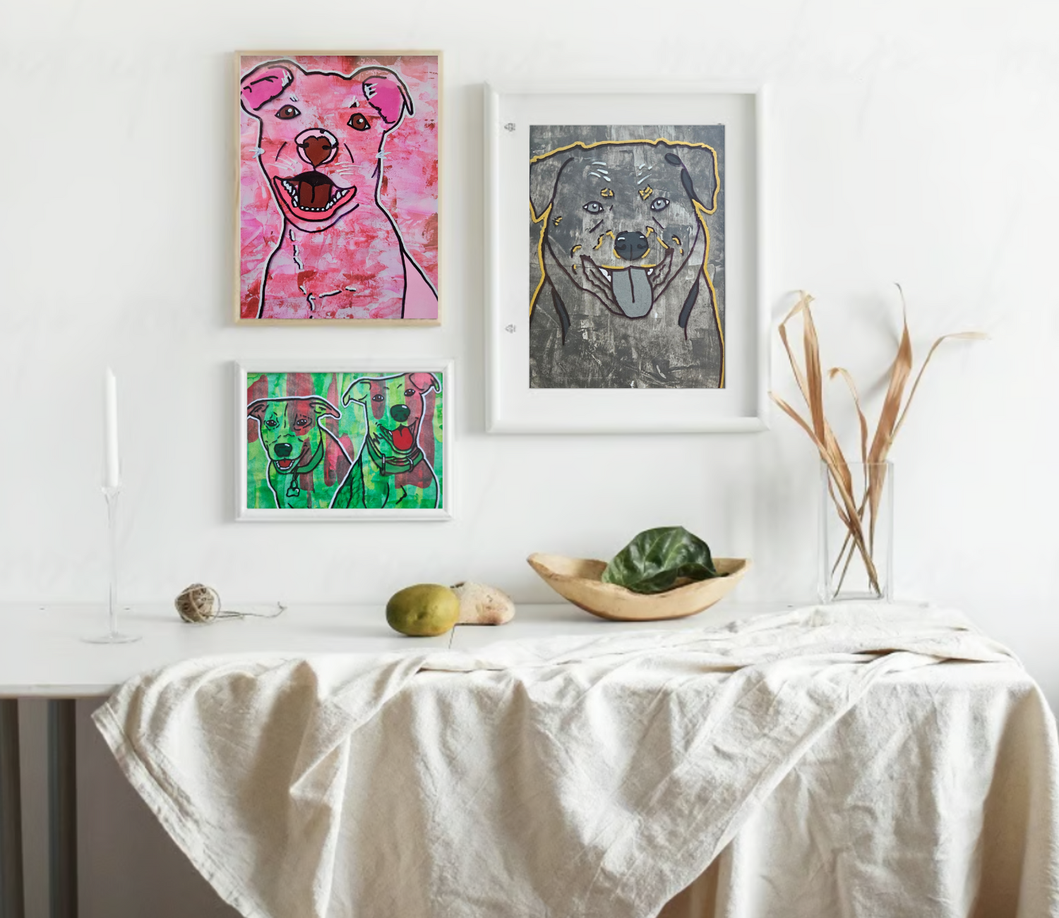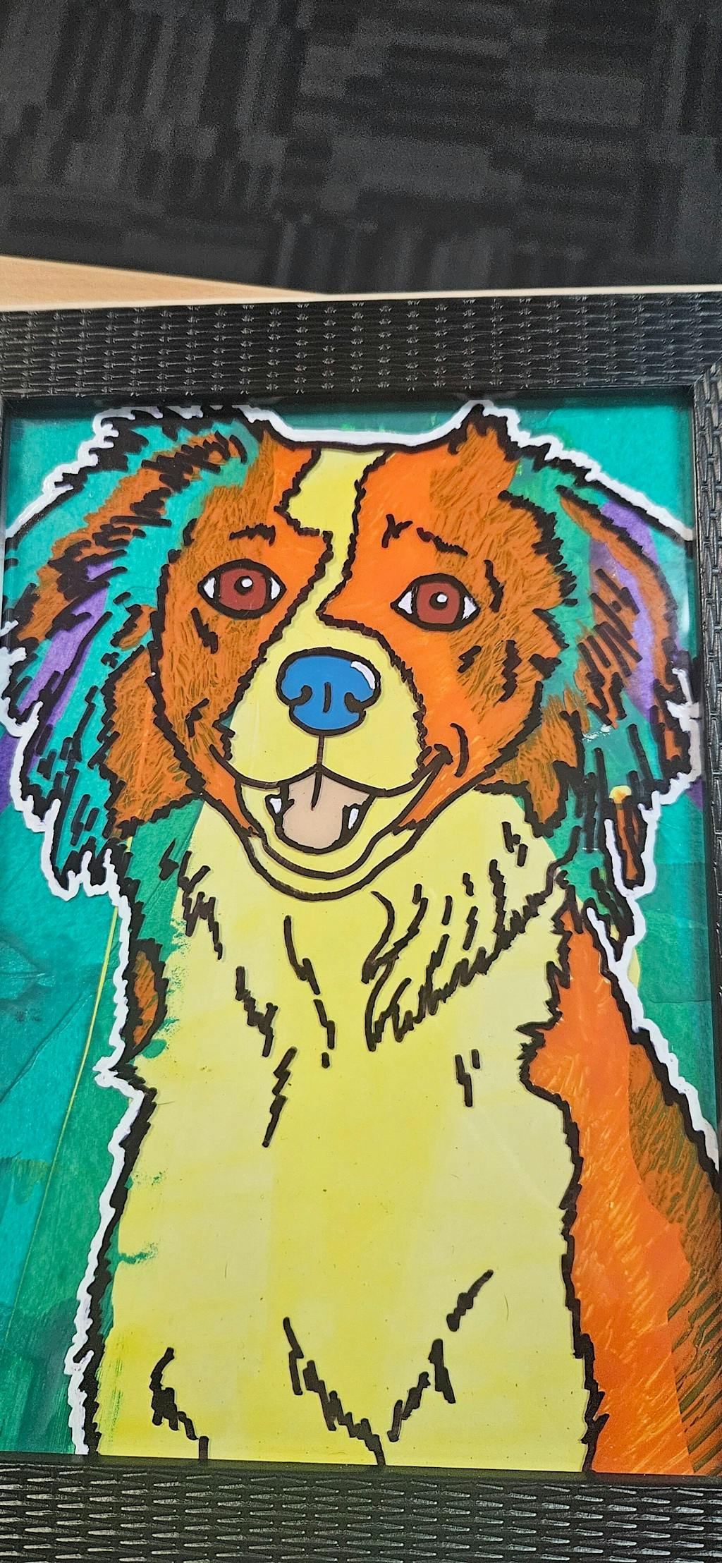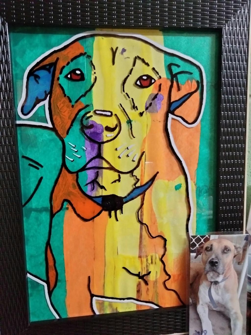 Extremely happy with the artwork. It was bought as a gift for a colleague who's dog had passed. She absolutely loved it!!! It looks exactly like her Abby. Thank you so much!!!!