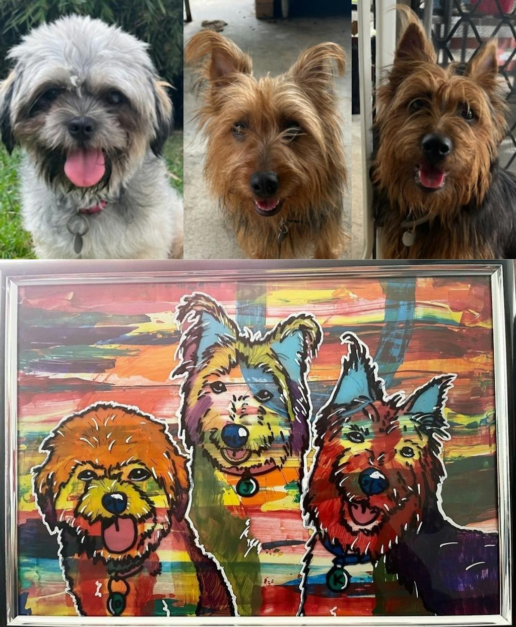 I am very happy with my artwork from treasure tails! the attention to detail is very impressive, the artists got the unique traits of my two Australian shepherds that I can tell the difference between the two just by looking at them. This one is being displayed at the entry for everyone to see.